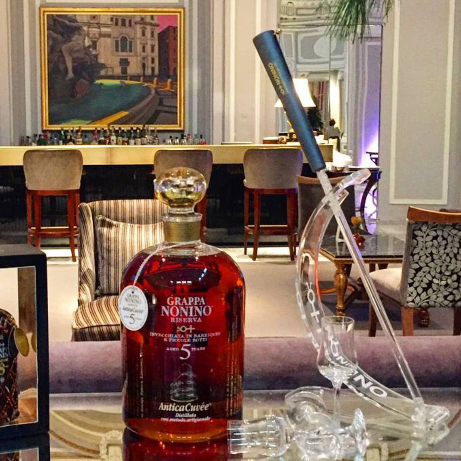 Mit dieser Pipette kannst du den Grappa in der richtigen Menge aus der Flasche entnehmen und zu servieren, um die Eigenschaften des wunderbaren Grappas vollends genießen und schätzen zu können. Aus lebensmittelechtem Glas, inklusive Halterung aus Plexiglas mit Nonino Aufdruck. Grundfläche ca. B32 x L11 cm, H60 cm